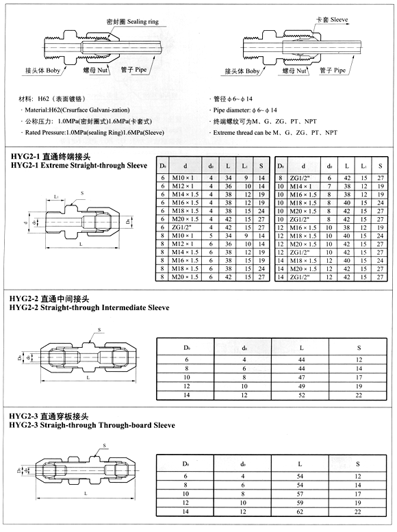 HYG1系列鋼制單卡套式管接頭