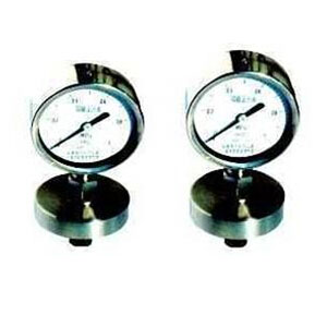 原理:膜片式壓力表是膜片作為儀表的強性元件,當被測介質的壓力作用到膜片上,膜片產生一個位移,再經過機芯部件,指針部件的工作,使要測的 壓力清楚地在刻度盤上指示出來。