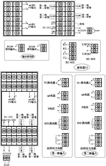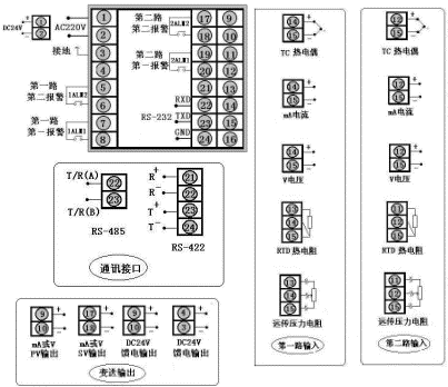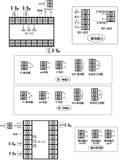 測量顯示,通訊方式為RS232,y.i路輸出方式為繼電器輸出,第二路輸出方式為4~20mA,y.i路輸入類型為CU50,第二路輸入類型為Pt100.1,y.i路y.i報警為上限報警,y.i路第二報警為下限報警,第二路y.i報警為上限報警,第二路第二報警為下限報警,DC24饋電輸出,供電方式DC24V。