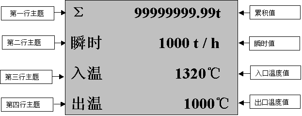 帶記錄,單路熱量表,通訊方式為RS-485,輸出方式為繼電器輸出,流量輸入類型為4~20 mA,入口輸入類型0~10 mA,出口輸入類型1~5V,y.i報警為下限報警,第二報警為上限報警,AC220V供電,橫表。