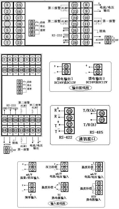 流量積算儀,無補償輸入,通訊方式為RS-232,輸出方式為繼電器輸入,流量輸入類型為4 ~ 20 mA,y.i報警為上限報警,第二報警為下限報警,DC24V饋電輸出,DC24V供電,豎表。